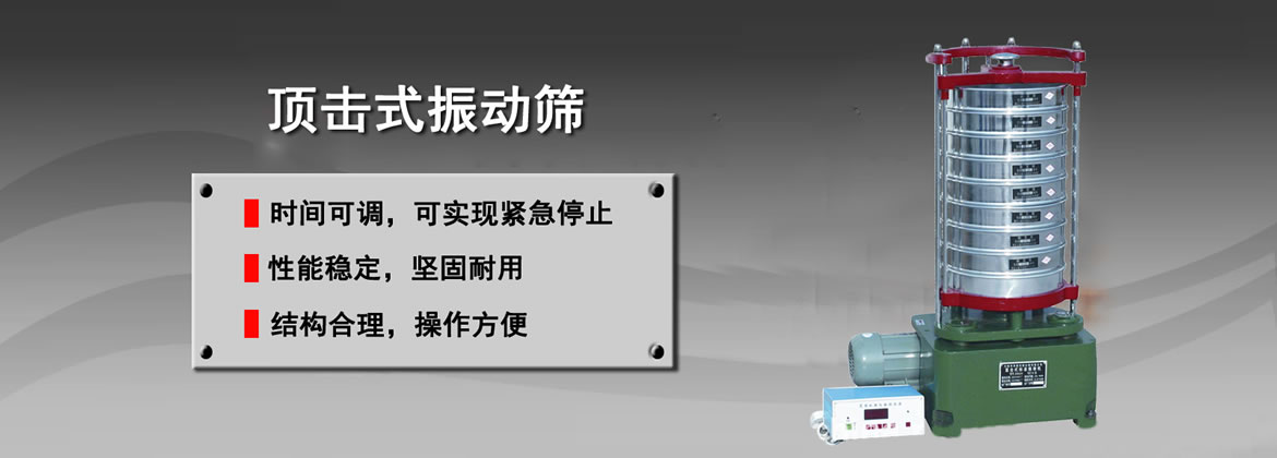 顶击式振动筛又名顶击式振筛机,该设备为标准型试验室专用振动筛,规格有¢200mm、¢300mm样式。符合建材、地质、交通、化工等行业有关测试规范的要求,该机具有回转和振击双重运动,能定时控制筛分时间。充分利用偏心原理使机器的平台面发生有规律的震动和顶击,代替了手工式筛分物料的优势,具有时间精准、力度合理、频率均匀等优点。