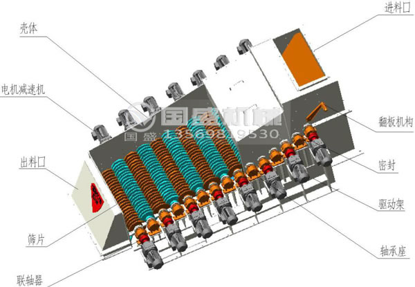 ●所有筛轴均有标准零部件组成,相隔筛轴可互换安装使用。